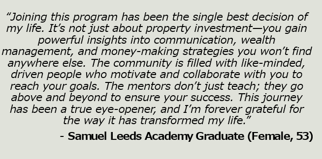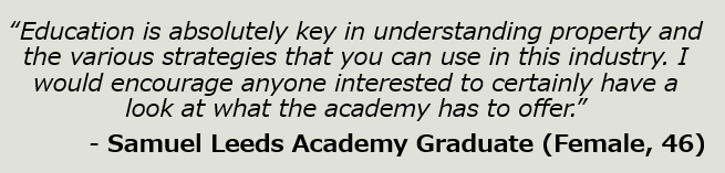 Overall, an impressive 91% of respondents said that the Samuel Leeds Academy was worth the financial investment, with 95% of respondents saying that they would recommend the Samuel Leeds Academy to someone interested in getting started in property.