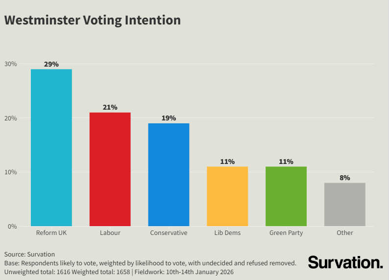 Labour failing to win over enough of Britain’s Progressive Majority, with Reform still top of the polls