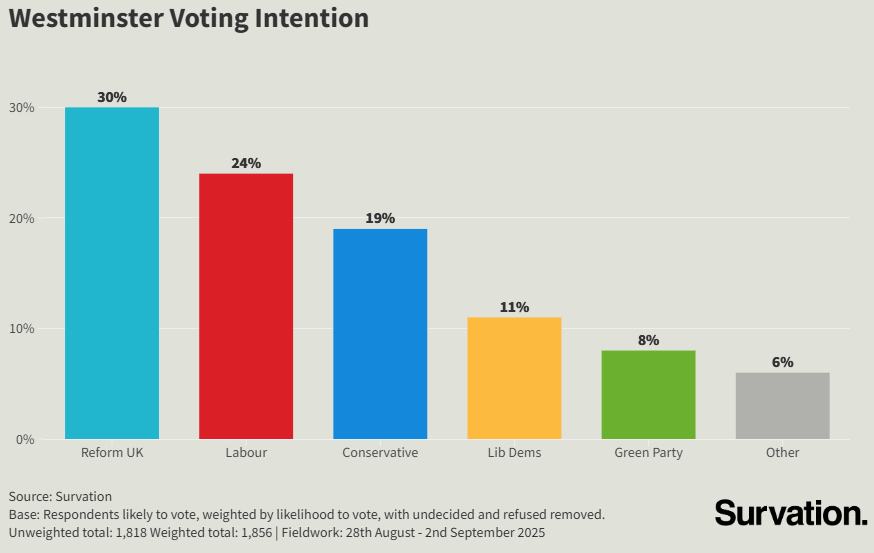 Reform UK hold strong in the polls as a third of 2024 Labour voters look elsewhere